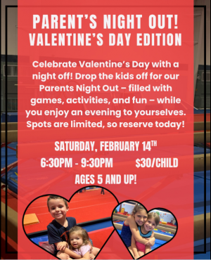 Celebrate Valentine's Day with a night off! Drop your kids off for our Parent's Night out and enjoy a date ...