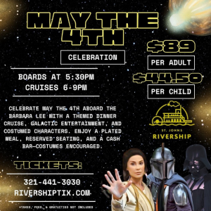 Celebrate the spirit of May the 4th be with you aboard the Barbara Lee with an out-of-this-world dinner cruise you ...