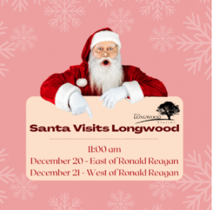 Santa will visit Longwood on Saturday, December 20 at 11 am and Sunday, December 21 at 11 am. His routes ...