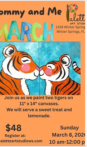 Come paint a sweet Tiger scene! Children bring an adult and we will be painting two 11x14 canvases. After painting we ...